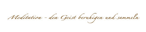 Der Übungsweg der Meditation führt zu dem Ruhezustand des wachen Schauens, welcher Meditation genannt wird. In regelmäßigen Sitzungen lernen wir gemeinsam verschiedene Atemtechniken und verschiedene Arten von Meditation- und Konzentrationsübungen, wie zum Beispiel: